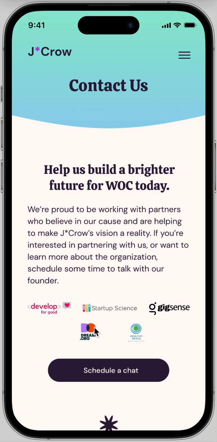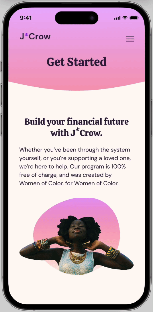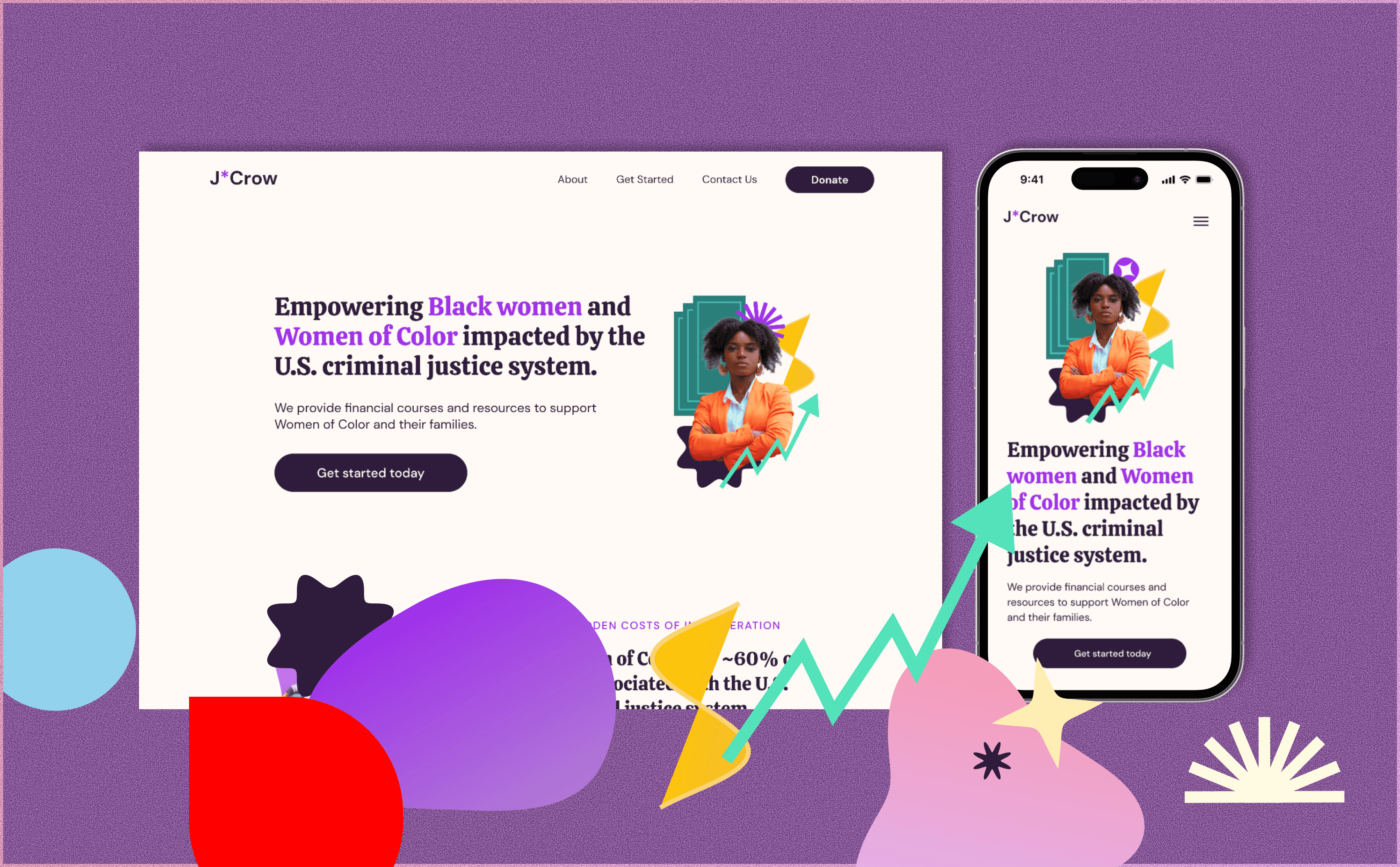 J*Crow is a non-profit organization dedicated to advancing economic justice for Black women and Women of Color impacted by the U.S. criminal justice system. In partnership with Develop for Good, I led the product and design process to deliver a responsive website that supports users through education, application, and community resources. As the Co-Product & Design Manager, I worked closely with the founder to translate her vision into a scalable, accessible digital platform.