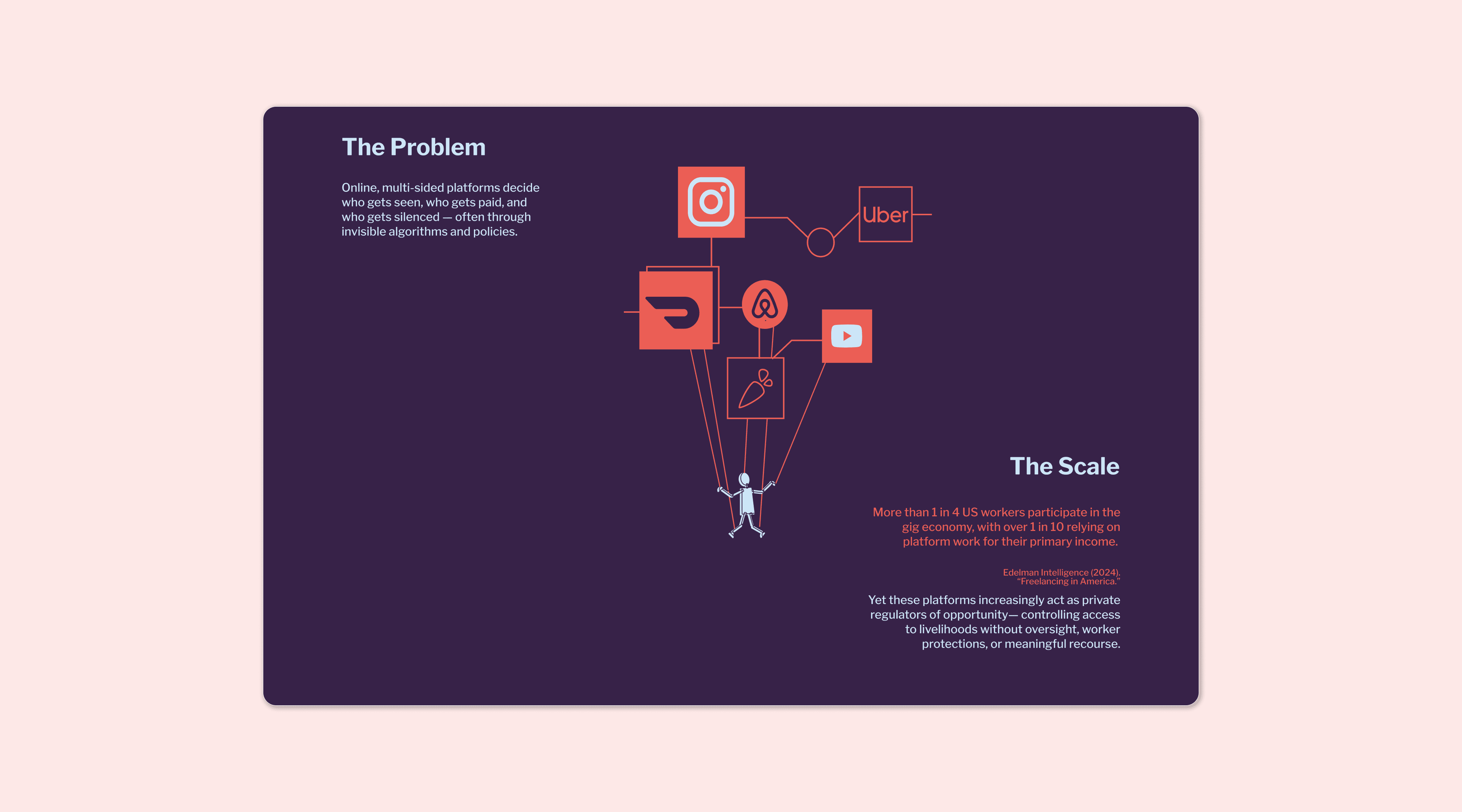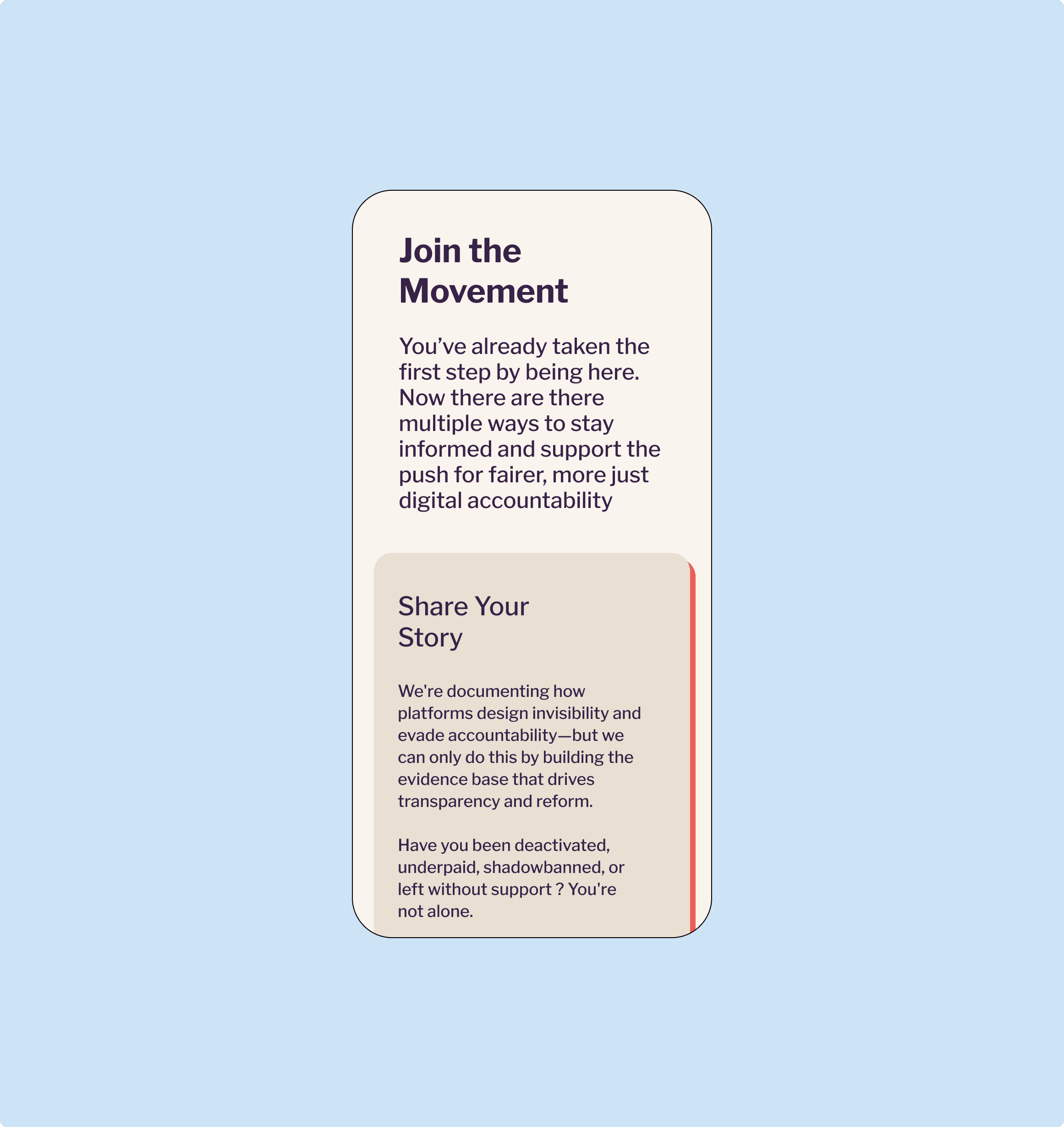 Platform Justice is a public-interest initiative that exposes how digital platforms operate with limited accountability and impact people's lives. This nonprofit hub documents real stories of harm from homestay hosts, rideshare drivers, and creators, turning individual experiences into collective action for reform.